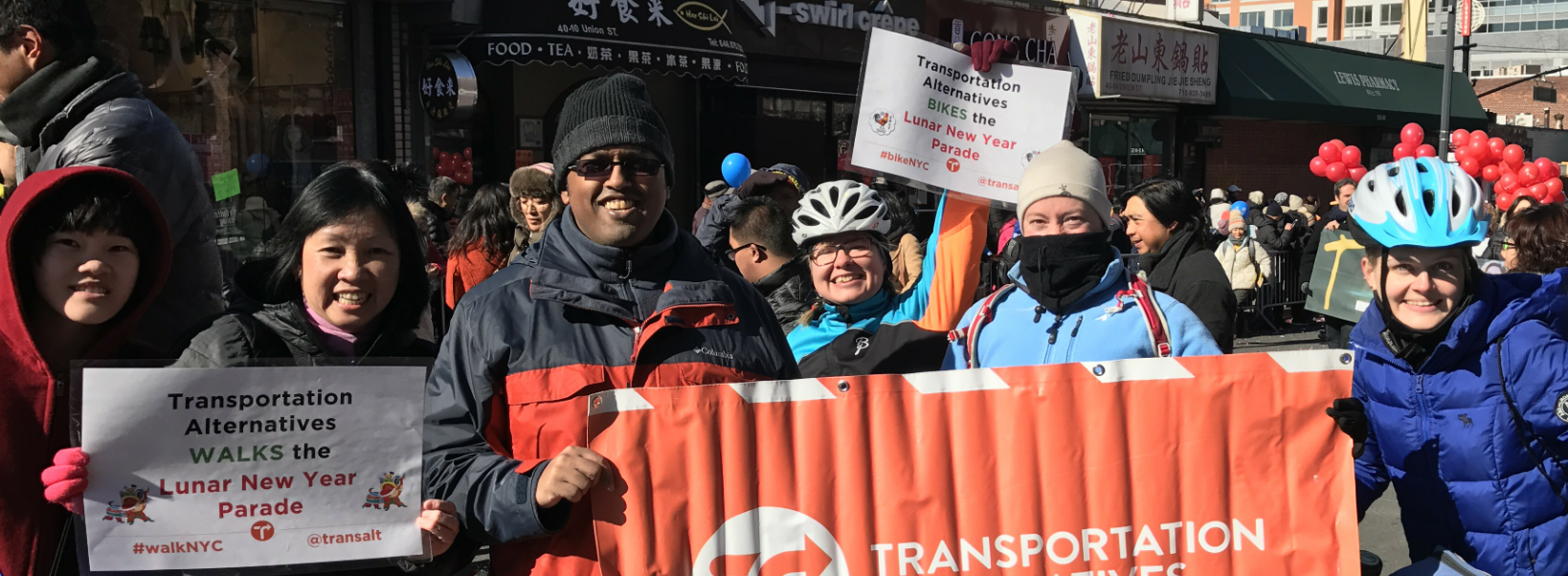 On Saturday Janet, Jessame, Joby, Juan, Kaite, and Leona matched with some friends at TA in the Lunar New Year Parade in Flushing: