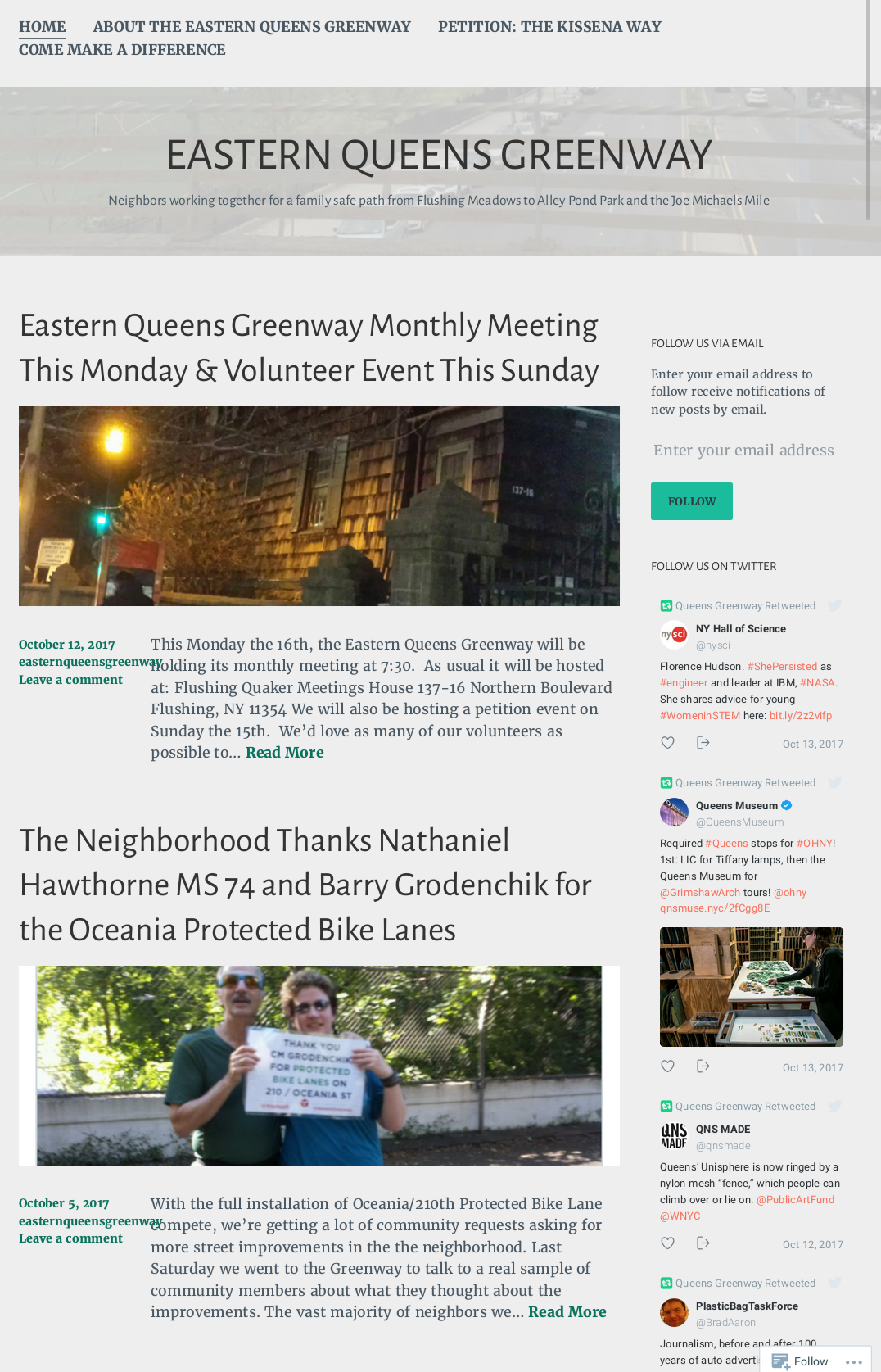 For a little over a year the Eastern Queens Greenway has been dedicated to improving the infrastructure in our community. Working together we can make sure everyone has safe access to their parks. We’ve learned a lot over that time and we hope to continue to grow and evolve to better serve our community. As we’re building our culture and identity, we wanted a logo that would support our goals. Joby has taken up the task and has put together this fantastic graphic.