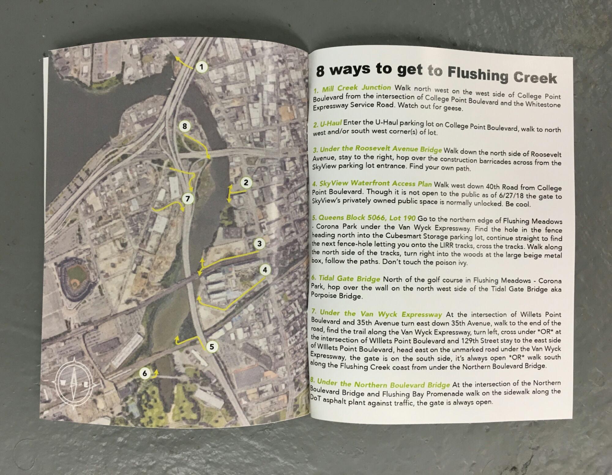 As part of the #InYourNeighborhood program aluminum signs directing people to Flushing Creek will be installed on existing street sign posts in Flushing and Willets Point. A short publication including photos of the Creek and various walking routes to access the waterfront will also be distributed via sign posts.