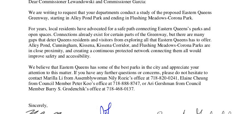 2018-09-06 Final Letter to DOT & DPR Eastern Queens GreenwayFullWe’re happy to announce that one of our newest politicians, Senator John Liu, has just joined the list of supporters.Screenshot from 2019-02-16 17-12-19