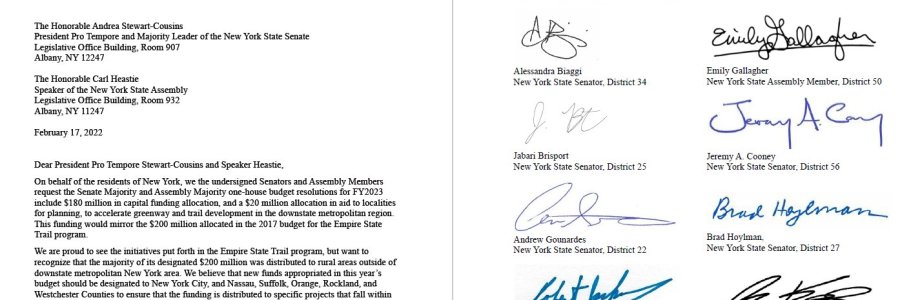 39 Senators and Assembly Members Ask for $200 Million for Greenways