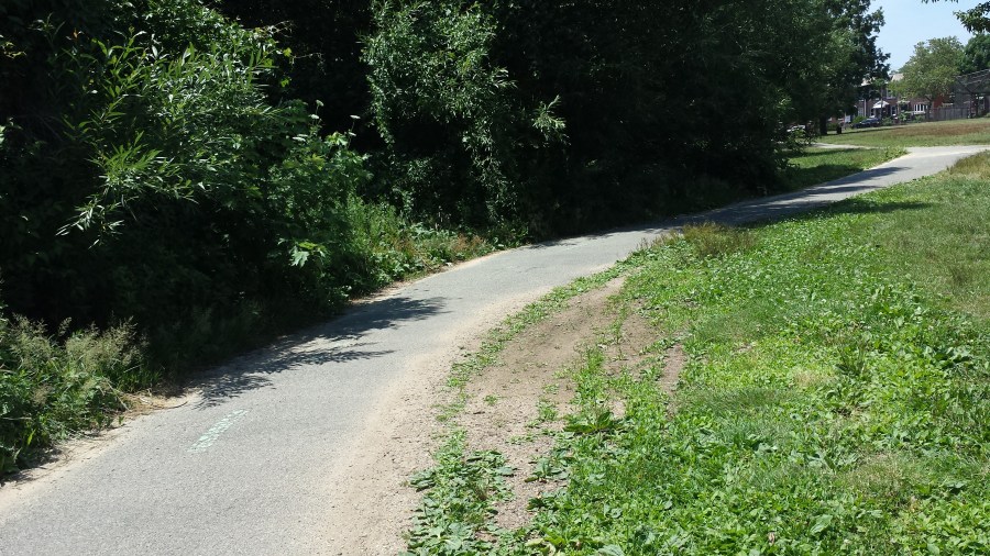 When it rains, the current path can be fully submerged. Though even when not water-logged, the path narrows every year due to the natural drainage to this site. It makes no sense to continue to repair this path instead of building a connection to the new greenway path at a higher elevation.