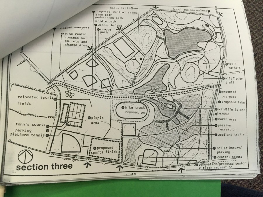 Included in the old Philadelphia Plan, a north/south connection was envisioned but never implemented. We can see in this plan the “wooden bridge” would connect the north section of the park to the greenway. Now that we’re finally building the greenway, we can’t forget about this bridge (or the modern equivalent).