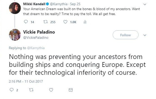 - Vickie also insulted non-Europeans for their technological inferiority: