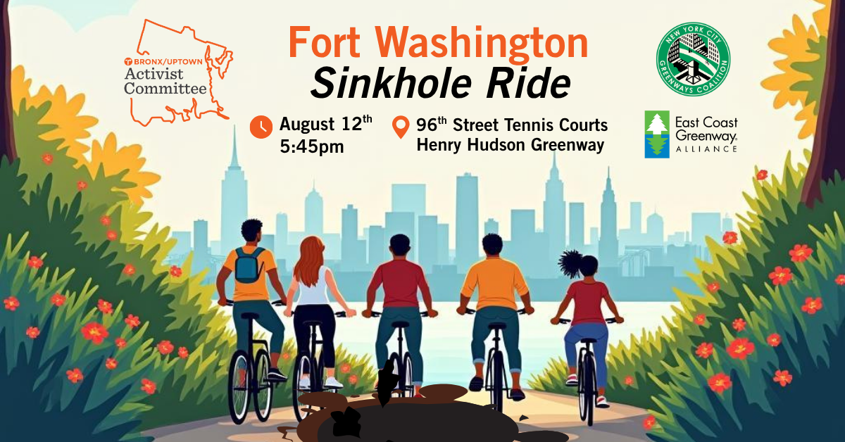 - Fort Washington Greenway Study: NYC Parks is collecting public input on long-term fixes to chronic sinkhole issues between 181st and Dyckman. Cyclists and neighbors are encouraged to share feedback through surveys (available in English and Spanish) and subscribe to project updates via email.