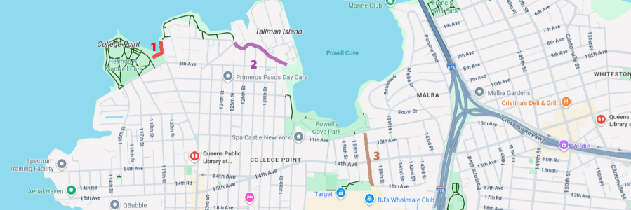 College Point has very little street safety infrastructure, which means it’s residents (especially kids) are a high risk of being run over. We’ve designed a plan that would minimize disruption for the community, but create major routes to safely connect to parks and schools.… Read More Help the Kids of College Point Take Their Parks Back